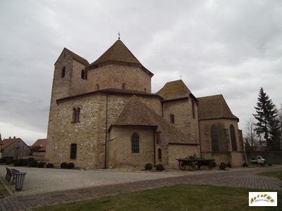 Cette église est le plus ancien bâtiment d'Alsace qui soit encore visible dans son état originel. Sa construction est attribuée au comte Rodolphe d'Altenbourg. Il fonda, en 1030, sur ses terres d'Ottmarsheim, une abbaye. L'origine du nom du village est attribuée à l'abbé Othmar de l'abbaye de St-Gall qui aurait possédé des terres à cet endroit en 881. La fondation de l'abbaye est attestée par un manuscrit en latin daté de 1063 et signé par Henri IV, empereur du Saint-Empire germanique.