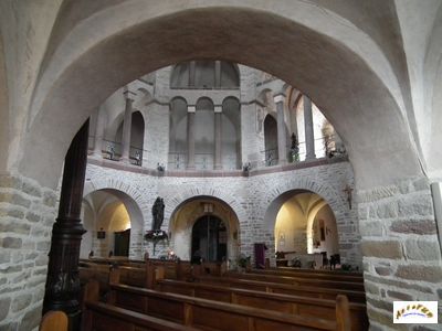 L'abbatiale est une copie, en format réduit, de la chapelle Palatine érigée entre 790 et 805 par Charlemagne à Aix-la-Chapelle. À l'époque, la chapelle Palatine était considérée comme la plus belle église de la chrétienté. Le plan primitif était constitué de deux octogones concentriques. Le grand octogone a un diamètre de 20 m. Il s'élève sur 2 niveaux. Le petit octogone, au centre, a un diamètre de 10 m. Sa hauteur est de 20 m. Ils sont couverts par des toits à huit pans triangulaires en tuiles. Ce bâtiment octogonal est complété, côté ouest, par un clocher-porche couvert d'un toit à deux pans. Sur le côté est, se trouve le chœur de plan carré. Il s'élève sur 2 niveaux. En 1495, fut rajouté, sur le flanc sud-est, la chapelle Sainte-Croix et en 1584, au nord du chœur, la chapelle des Chanoinesses.