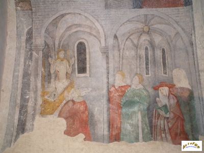 La fresque de la voute à l'entrée de la chapelle de la Sainte Croix