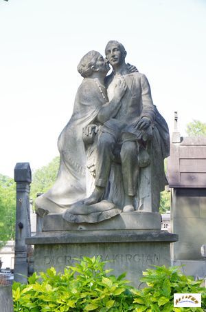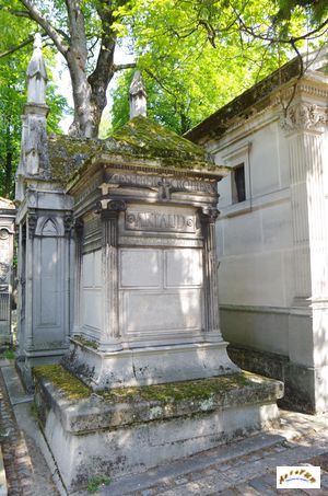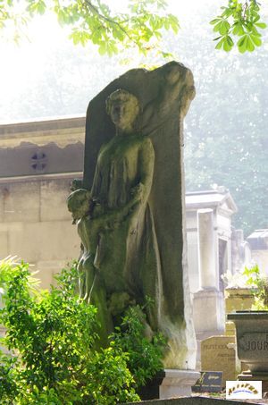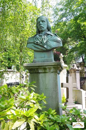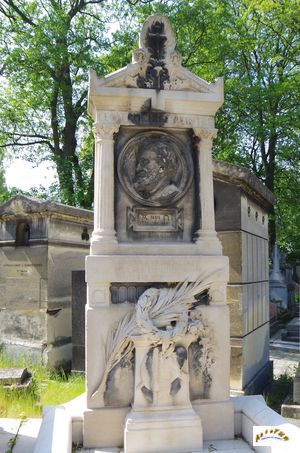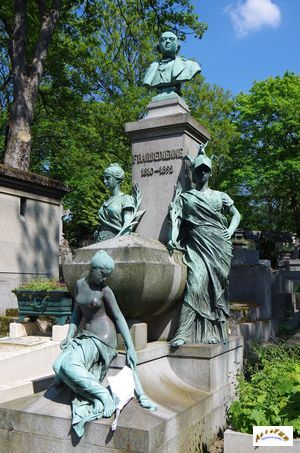 Sépulture d’Hippolyte Léon Rivail dit Allan Kardec (1804-1869), pédagogue, fondateur de la philosophie spirite. Il initia lui-même le culte dont son mausolée allait devenir l’objet en déclarant "Après ma mort, si vous passez me voir, posez la main sur la nuque de mon buste puis faites un vœu. Si vous êtes exaucé, revenez avec des fleurs".