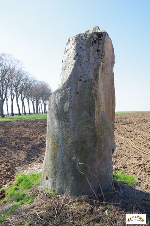 Le bloc d'une longueur de 3,40 m, large de 1,40 m et épais de 80 cm, fut redressé en 1912 à 45 m à l'est de son lieu de découverte. Actuellement il dépasse de 3 m de la surface du sol. Sur la face orientée vers l'est, à 10 cm au-dessus du sol, se trouve une cupule très profonde d'où rayonnent cinq petits sillons gravés. L'ensemble forme une représentation solaire. Cette gravure fut mentionnée en 1913 par le docteur Atgier. Sur la face opposée sont gravées treize cupules sur trois rangées parallèles dans le sens de la longueur du menhir. Ces cupules pourraient cependant être récentes, car aucune publication ancienne ne les mentionne.